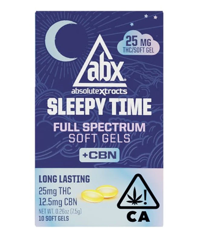 Precise Dosing, Flavor Free, Long Lasting 25mg THC & 12.5mg CBN/soft gel ABX Sleepy Time is made with ice water cannabis extract from whole flower cannabis, potent CBN, and calming terpenes designed to promote restful slumber.