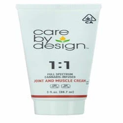 What It Is: The Care By Design 1:1 Full Spectrum Cannabis Joint and Muscle Cream infuses CBD and THC into a soothing cream made with aloe vera and shea butter. Why We Love It: The 1:1 Joint and Muscle Cream is packed with full-spectrum cannabis, CBD, THC, and minor cannabinoids THCa and CBDa. The cream is non-psychoactive when applied directly to the skin, so the effects can be enjoyed regardless of THC tolerance. Potency & Dosing: Each 3oz bottle contains 450mg THC and 450mg CBD. Apply topically (on the skin) as needed for non-psychoactive CBD comfort. This soothing cream uses full-spectrum cannabis oil and a unique blend of other essential oils designed for effective absorption and comfort. A bit about the brand: From the CBD-rich cannabis grown in Northern California's Emerald Triangle, Care By Design pioneered CBD to THC ratios that deliver powerful relief by harnessing the full theraputic potential of the cannabis plant.