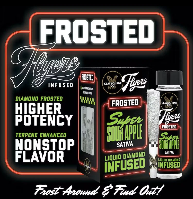 Frost Around & Find Out! These super tasty half gram pre-rolls are THCa Diamond Frosted, Terpene Enhanced, and made from Premium Indoor, Full Nug Flower Infused with Liquid Diamonds. Each Frosted Flyer is highly potent and packed with nonstop flavor all the way down to the crutch. Available In: (1g) 2-Packs & (2.5g) 5-Packs.