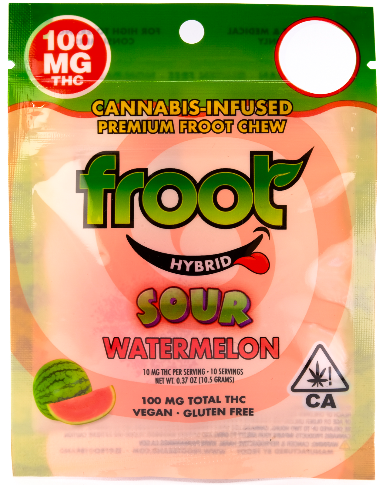The best tasting infused gummy ever! Froot Premium froot chews are made from the best plants on Earth! We only use the highest quality cannabis oil to infuse into Froot, creating an incredibly tasty consistently dosed Froot chew every time. Daytime, nighttime, or anytime... Enjoy Froot! Vegan, Gluten Free, Dairy Free 100mg total THC - 100 x 1-Piece (Gummy is perforated into 10 easy-to-cut pieces)