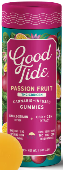 Take your mellow to the next level with Good Tide Passion Fruit THC:CBD:CBN gummies.