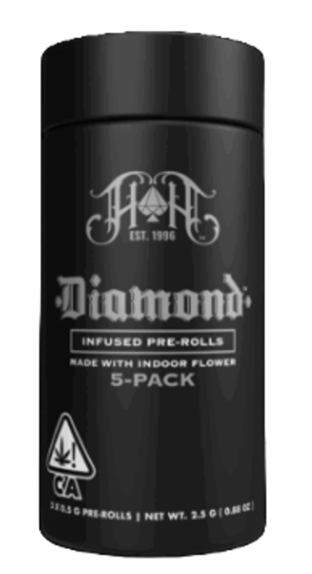 Diamond harmonizes ULTRA premium flower and ULTRA potent 98%+ THC-A diamonds, providing a deep balanced body effect and flavorful filled smooth smoke flow. The current strain offerings test at up to 55% THC!