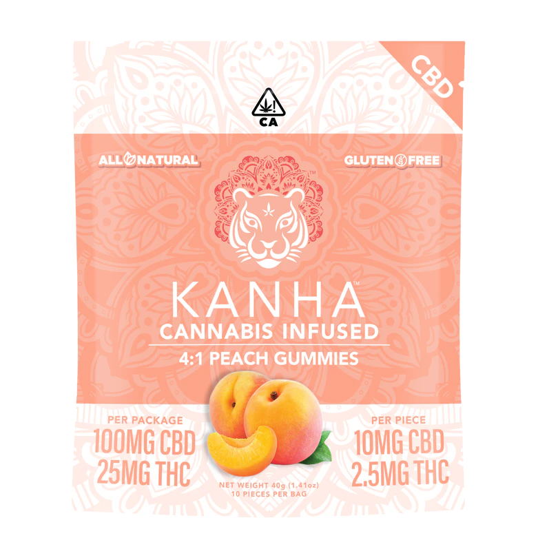 Kanha gummies are made with all-natural ingredients, coloring, and flavoring. Each gummy is infused with the highest quality cannabis oils to provide the most consistent, safe experience on the market. Our Peach 4:1 gummies are delectably sweet and made with 10mg CBD and 2.5mg of THC per gummy. CBD is a non-psychoactive cannabinoid believed to be an anti-inflammatory agent, natural sleeping aid, anxiety suppressant, pain reducer, and more.