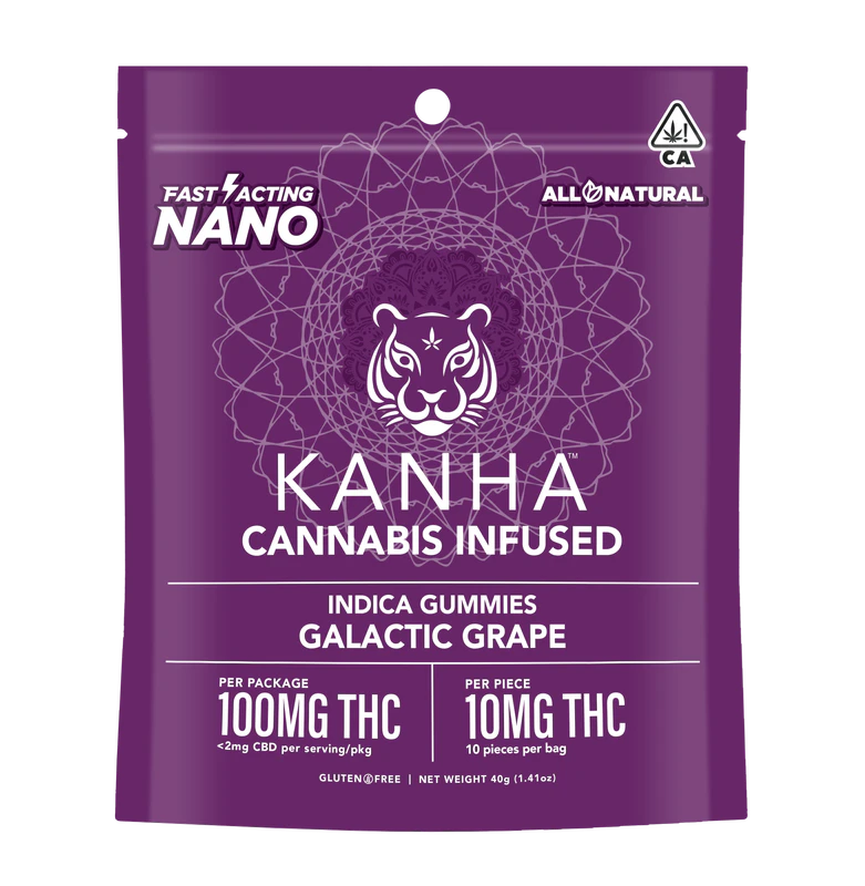 Kanha Nano utilizes nanomolecular technology to create the first fast-acting gummies in the industry. We take our award-winning, great-tasting gummies and infuse them with cannabinoid particles smaller than a wavelength of light, which increases the speed and amount that enters into your bloodstream. Our Galactic Grape gummies are juicy with a bite and made with indica terpenes, which induce a calm and relaxed state of mind. We've supercharged the nano tech in these gummies to be hard-hitting and send you into orbit in only 10-20 minutes.
