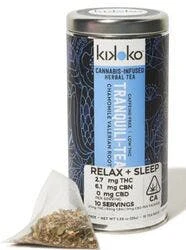 Tranquili-Tea is formulated to help people fall and stay asleep. CBN produces a sedative and relaxing effect that induces sleep, while THC increases sleep duration. Our herb blend includes chamomile and valerian root, which have been used throughout time as sleep agents. Organic ingredients: peppermint, chamomile, valerian root, lemon myrtle, licorice root, rosemary, lemongrass, lavender, cornflower petals, and KikoGold cannabis active. Psychoactivity: Low for most people and induces drowsiness. Suggested Uses: - The unique cannabinoid ratio helps users fall and stay asleep - Synergistic herbs relieve anxiety and have sedative effects - For less nighttime fluid, steep in half the water (potency the same) - Best drunk 60 minutes before lights out - May help migraines