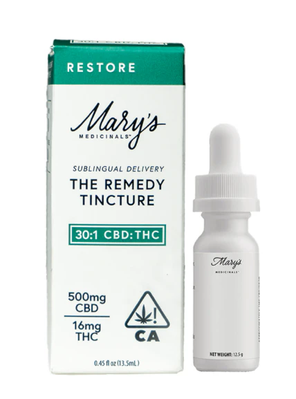 Infused with essential oil of cinnamon and myrrh, Mary’s Restore Tincture is your path to wellness and vitality. Featuring restorative terpenes like beta-caryophyllene and humulene, known for their anti-inflammatory qualities. Embrace the combined benefits of a non-intoxicating CBD forward tincture with supporting THC, carefully curated to support your body's natural processes.