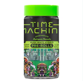 Time Machine Pre-Roll .5g Hybrid Kush Mints 28-Pack 14g Taking it back with two classics; Kush Mints crosses Animal Mints with Bubba Kush, a potent strain with a complex savory palate of fresh mint cookies dusted with menthol and pine amid the blissful hug of uplifting happiness. Growers say the best expressions of Kush Mints are done hydroponically, and luckily our cultivators are generational hydro heroes. Flavors Mint Spicy/Herbal Lemon