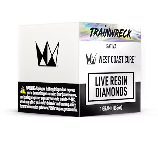 West Coast Cure’s Trainwreck Live Resin Diamonds are a Sativa-leaning expression of the cultivar. Produced from hand-selected batches of the whole plant, fresh frozen flower, the THCA crystals in sauce express a sweet and saccharin nose of pine, lemons, wood, and herbs. Creating an energized and positive headspace, its effects are uplifting, happy, and euphoric.